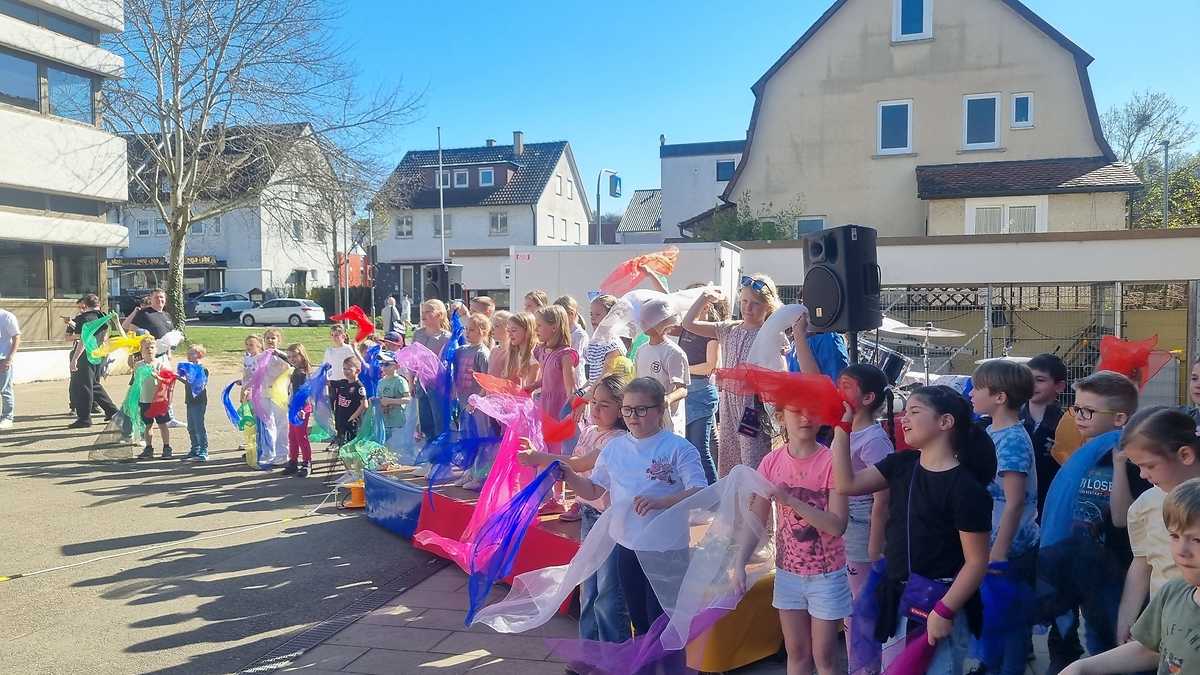 Auch das Bühnenprogramm war ein echtes Highlight: Die Schulband sorgte für tolle musikalische Stimmung, die Grundschule bot Auszüge aus dem Schulmusical und fröhliche Tschakka-Lieder, bei denen viele begeistert mitsangen.