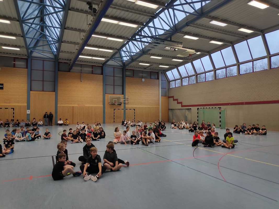 Der Dank geht an Frau Fieber, die alles organisiert hat, an die Sportlehrer, welche mit den Kindern fleißig geübt haben und an die 9er, die das Spiel begleitet haben!
