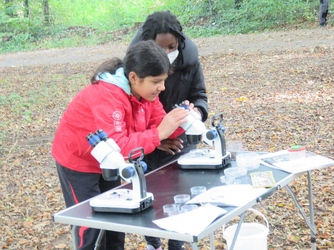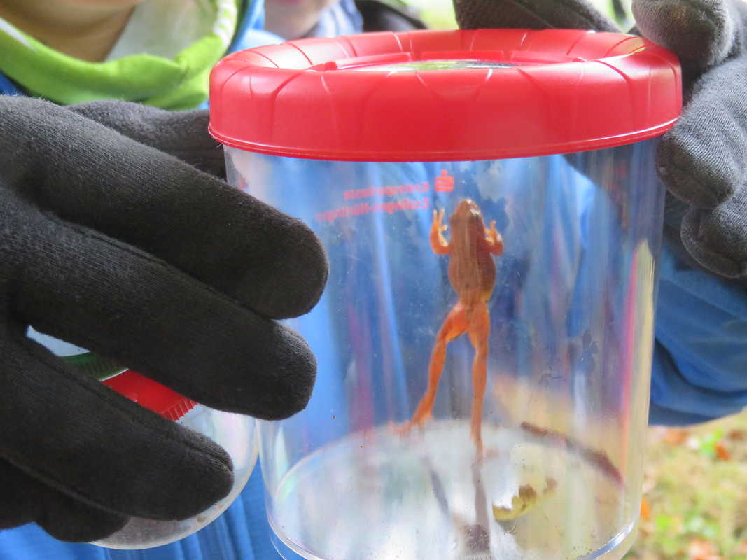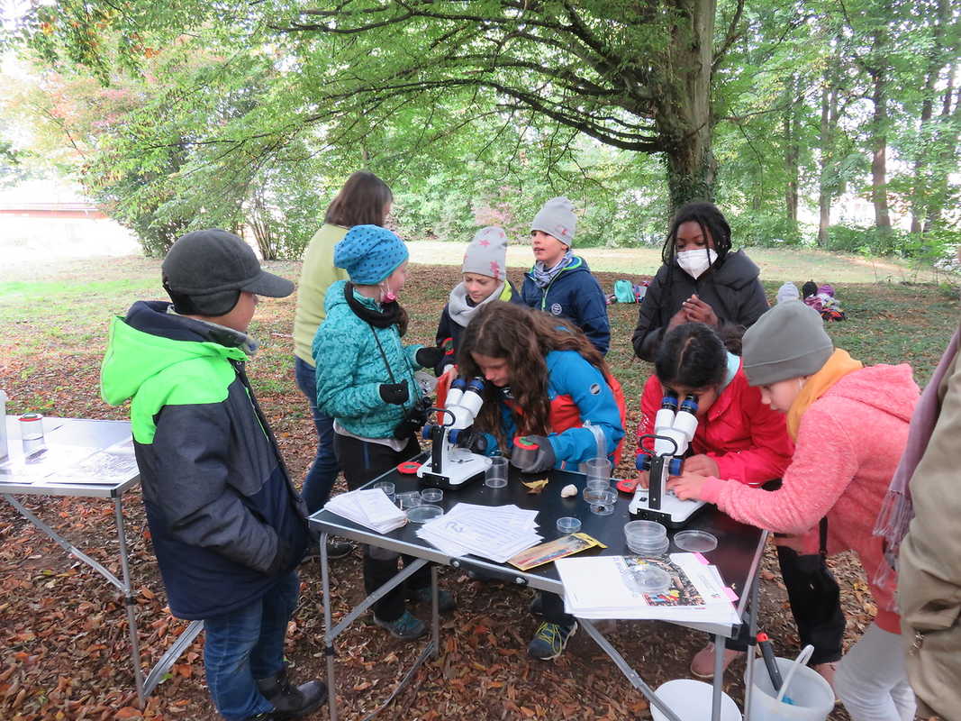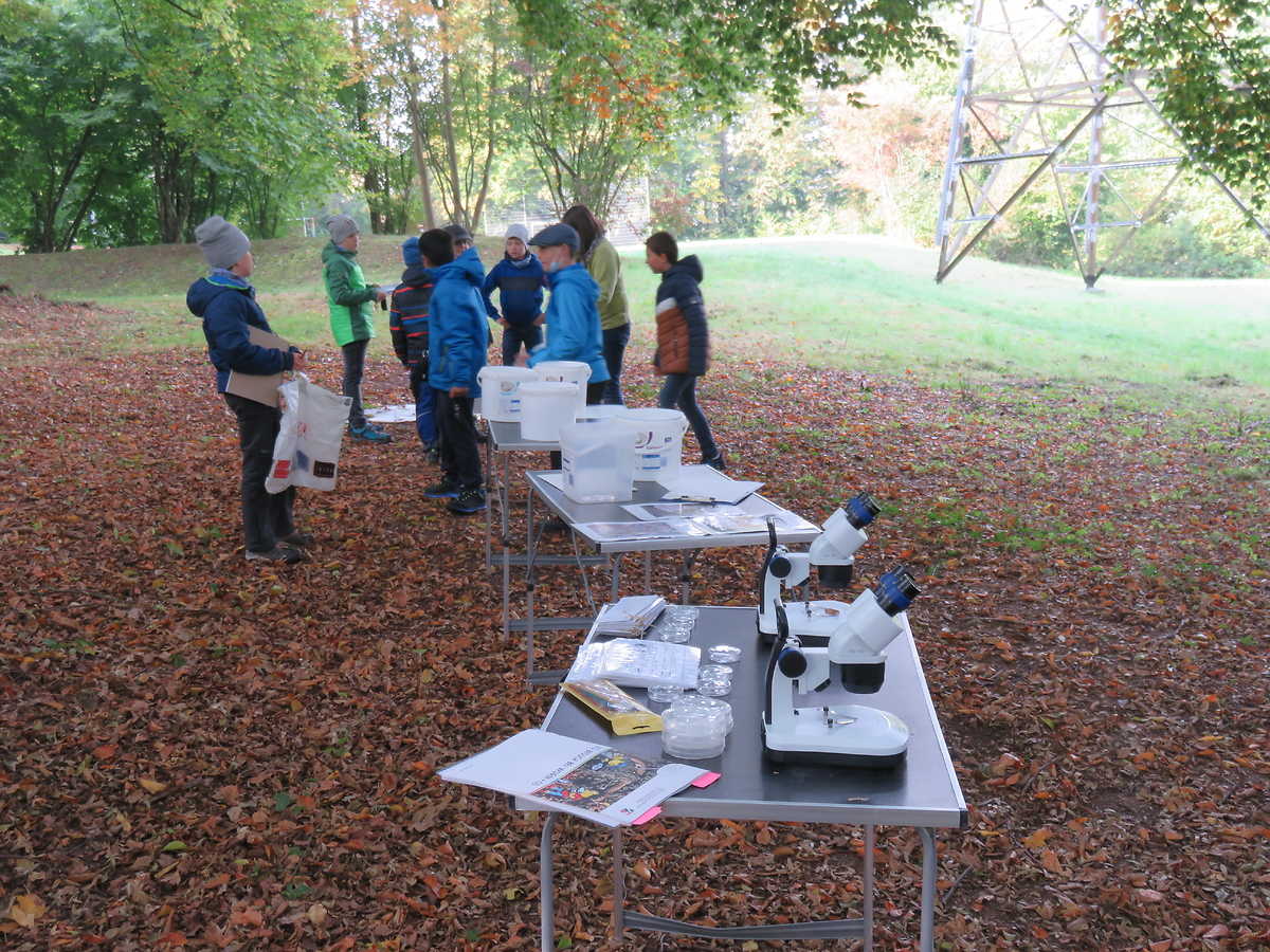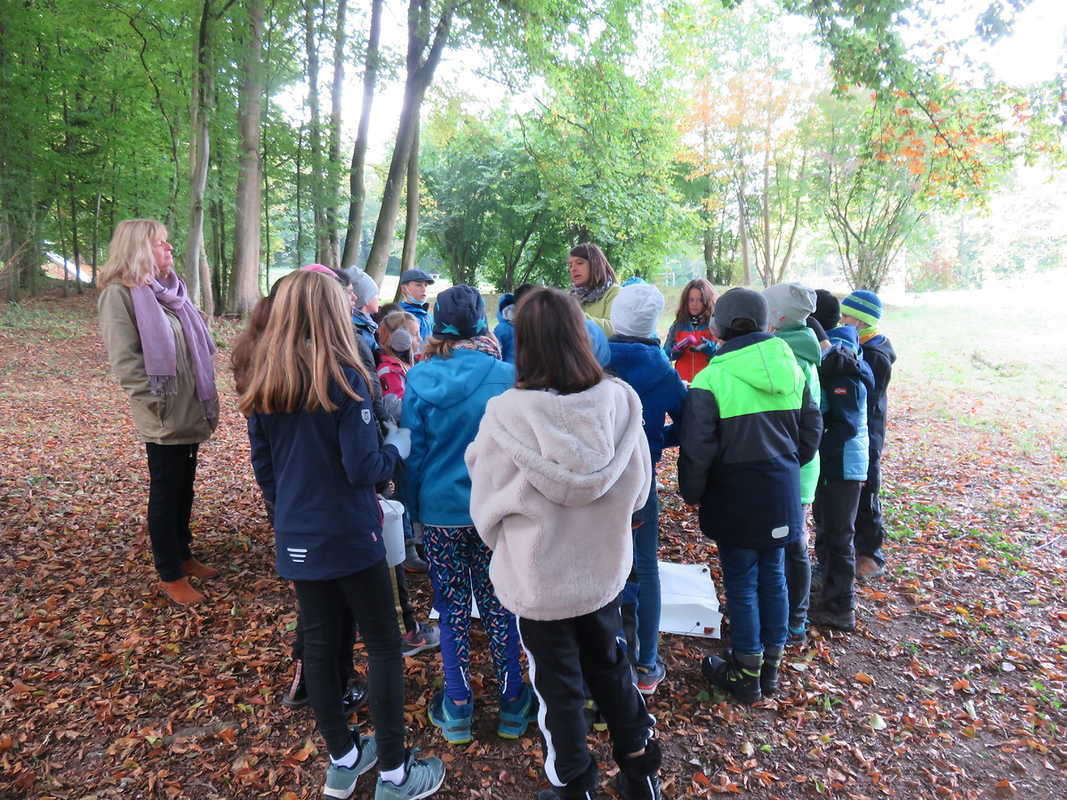 An einem schönen Montagmorgen im Oktober machte sich die Klasse 4a auf den Weg in den Wald. Dort erwartete uns Frau Beier vom Umweltzentrum Neckar/Fils aus Plochingen. Wir wollten wissen, welche Pflanzen und Tiere auf der Bodenschicht des Waldes leben. Mit Schaufel und Eimer sammelten wir zuerst die Pflanzen am Boden ein und schauten sie uns genauer an. Frau Beier erklärte uns die Pflanzen ganz genau. Danach gingen wir auf Tiersuche. Es gab viele Insekten, Spinnen, Tausendfüßer, Käferlarven und Asseln. Sogar einen kleinen Frosch haben wir gefunden und in die Becherlupe gelegt. So konnten wir ihn genauer anschauen. Die anderen Tiere legten wir unter ein Mikroskop, darunter sahen einige sehr gruselig aus. Zum Schluss ließen wir alle Tiere wieder in die Natur.